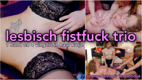 Lekkere redhead mercedes hebben we onlangs al kunnen bewonderen in haar lesbische onderonsje met Ashley More. Vandaag wilde ze graag de heftigere kant op en daarom hebben we Meesteres Noir en haar slavin uitgenodigd voor een kinky lesbisch trio. Bij Noir weet je nooit welke kant het op gaat. Zij is een kei in het opbouwen van een spel, dat meestal uitpakt zoals zij het wil. Ze zegt het al in het begin van haar ontmoeting met Mercedes: 'oprekken, wat vind je daarvan?' Mercedes antwoordt met: 'Mijn kutje kan wel wat hebben.' En dan weten we eigenlijk al welke kant het opgaat. Mercedes wordt waanzinnig opgegeild door Noir en Noortje, haar persoonlijke slavin. En dan gaat Noir met haar kutje aan de slag. Met haar vingers, een dildo, een opblaasbare pik om dat kutje van binnenuit op te rekken, en als klapstuk gaat haar hele hand dat heerlijke kutje van Mercedes in. Maar zou er nóg iets bij kunnen? 4 Vingers bijvoorbeeld?