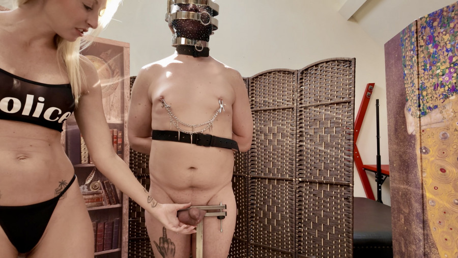 Elise kruipt in de rol van agent en besluit dat stoute jongens een harde straf verdienen. Haar vaste pijnslaaf is terug voor meer. Vastgebonden en volledig overgeleverd ondergaat hij zijn vernederende straf. Harde spanking zonder genade en ballbusting volgt snel. Op commando mag hij dan ook klaarkomen. Kijk hoe een echte slaaf zijn verdiende straf ondergaat.