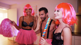 Vandaag weer een aflevering van Schaamteloos, waarin Indy, Jennifer en Marvin van Elise een speciale outfit krijgen aangereikt waar ze een toepasselijke act bij moeten uitvoeren. De 'slachtoffers' vinden het prachtig en maken er een feestje van. En als het lachen en dollen voorbij is zijn ze extra geil. Marvin scheurt Indy de netkousen van het lijf begint haar kutje te verwennen terwijl Jennifer aan zijn lul zuigt. Het is het begin van een oogverblindend geil trio. Wat zijn we jaloers op Marvin, die de twee mooiste pornogirls helemaal voor zichzelf heeft. Kijk hoe die twee om de beurt hun warme lippen om zijn lul laten glijden. Hoe tiener Jennifer zijn paal berijdt terwijl hij de kut van hete Indy diep aan het uitlikken is. Hoe Indy door Jennifer oraal wordt bevredigd terwijl ze ondertussen hard wordt geneukt. En hoe de meiden met smachtende open mondjes zitten te wachten tot hij zijn zaad er diep naar binnen spuit....