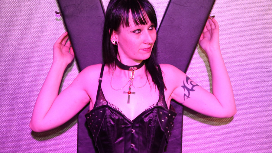 Kinky goth girl Abby has ended up with Latex Mistress Alice, who explains exactly what she will do to her. Spanking, bondage, toys and finally a deep fistfuck are the things she has in store and Abby, who undergoes it all in supreme pleasure, with a horny squirt as the splashing end. Kinky power at its finest!